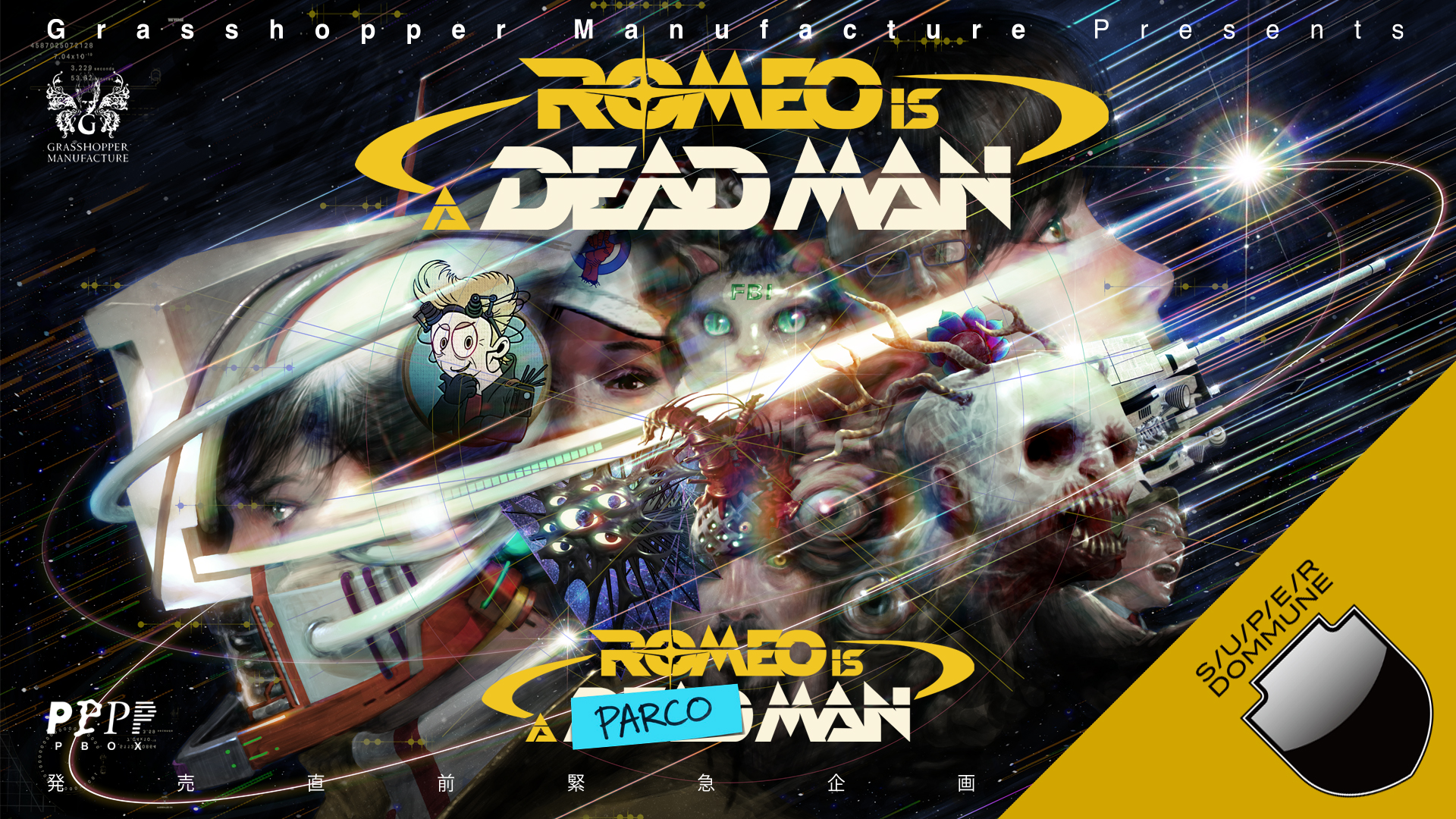 FEB 07 SAT Grasshopper Manufacture Presents ROMEO IS A DEAD MAN発売直前緊急企画「ROMEO IS A PARCO MAN」●MC:ローリング内沢 ●出演:須田剛一、DJフクタケ、山﨑廉、能丸督之、広岡毅 、服部グラフィクス、鈴木タカヨシ、Bose、金子ノブアキ、山岸聖太 ●SPECIAL LIVE:BLYY、Luby Sparks ●DJフクタケ