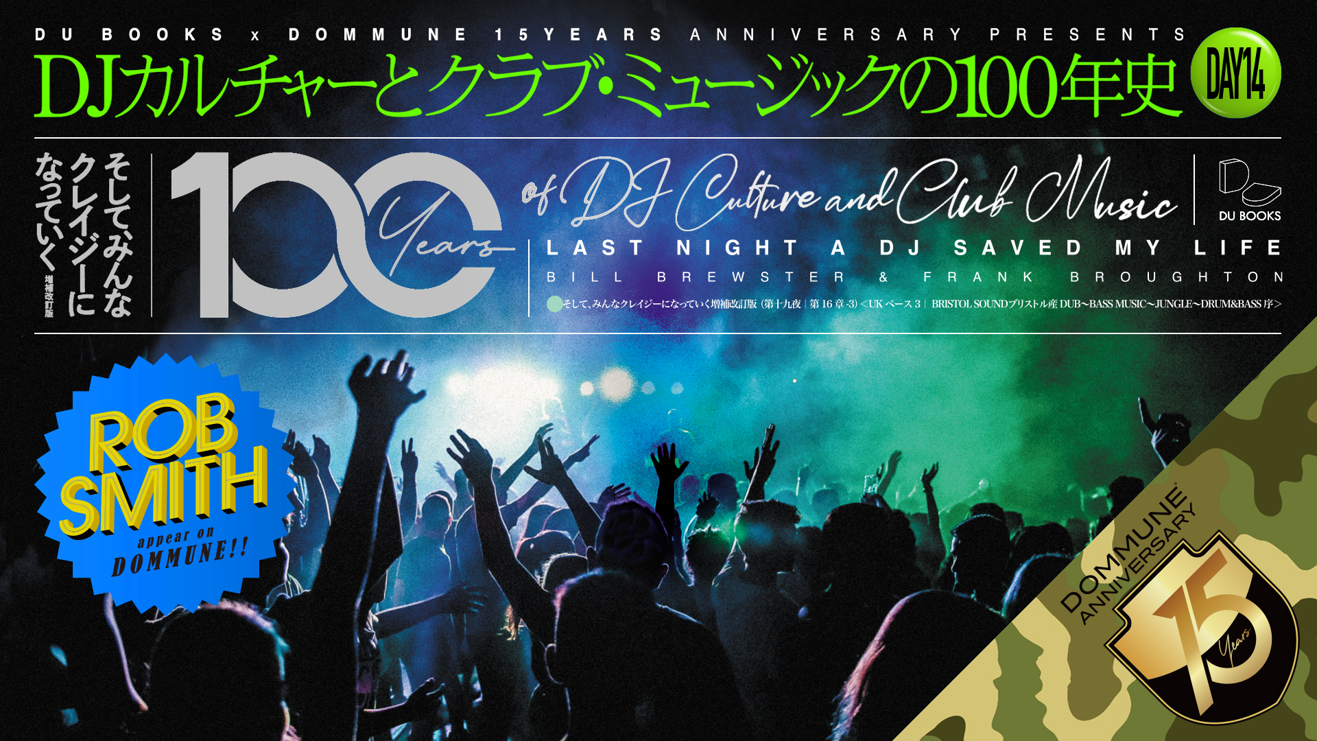 AUG 22 FRI DU BOOKS x DOMMUNE 15years ANNIVERSARY Presents 実写版「DJカルチャーとクラブ・ミュージックの100年史」<DAY14>〜そして、みんなクレイジーになっていく 増補改訂版(第十四夜|第16章-1)<UKベース1| JUNGLE、DRUM & BASS 序>