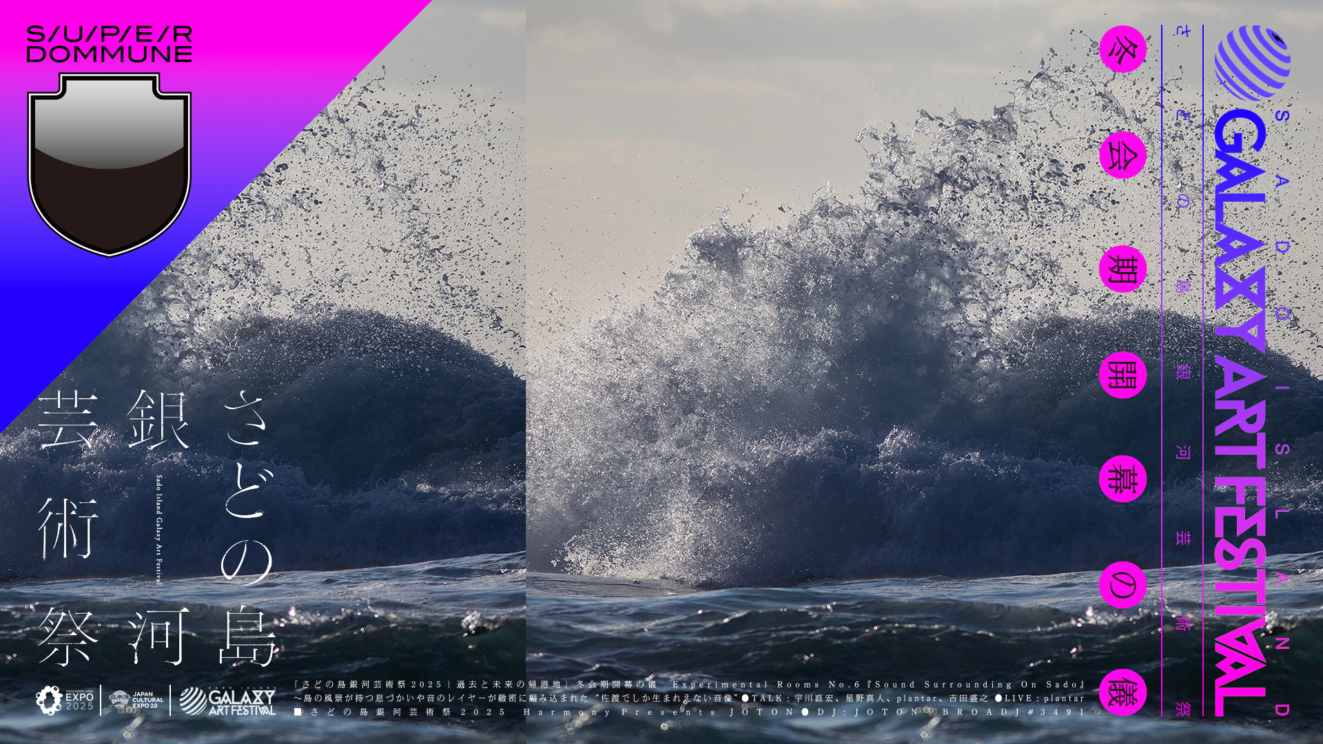 JAN 09 FRI 「さどの島銀河芸術祭2025|過去と未来の帰港地」冬会期開幕の儀 Experimental Rooms No.6『Sound Surrounding On Sado』 ●TALK:宇川直宏、星野真人、plantar、吉田盛之 ●LIVE:plantar ●DJ:JOTON