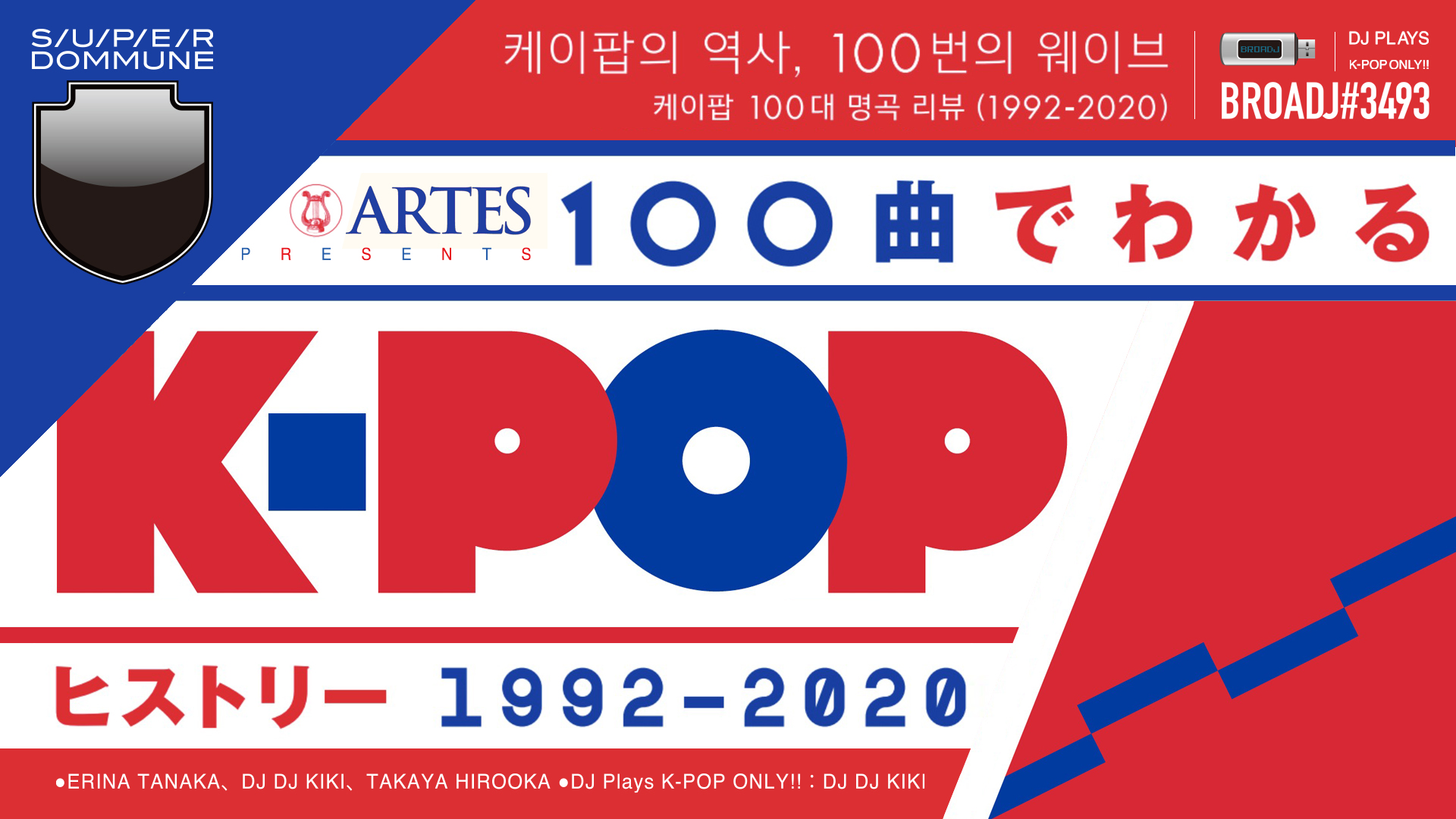 JAN 14 WED ARTES Presents 実写版『100曲でわかる! K-POPヒストリー 1992-2020』●出演:田中絵里菜、DJ DJ機器、廣岡孝弥 ●DJ Plays K-POP ONLY!!:DJ DJ機器|BROADJ#3493
