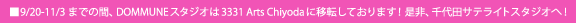 ■ 9/20~11/3までの間、DOMMUNEスタジオは3331Arts Chiyodaに移転しております!