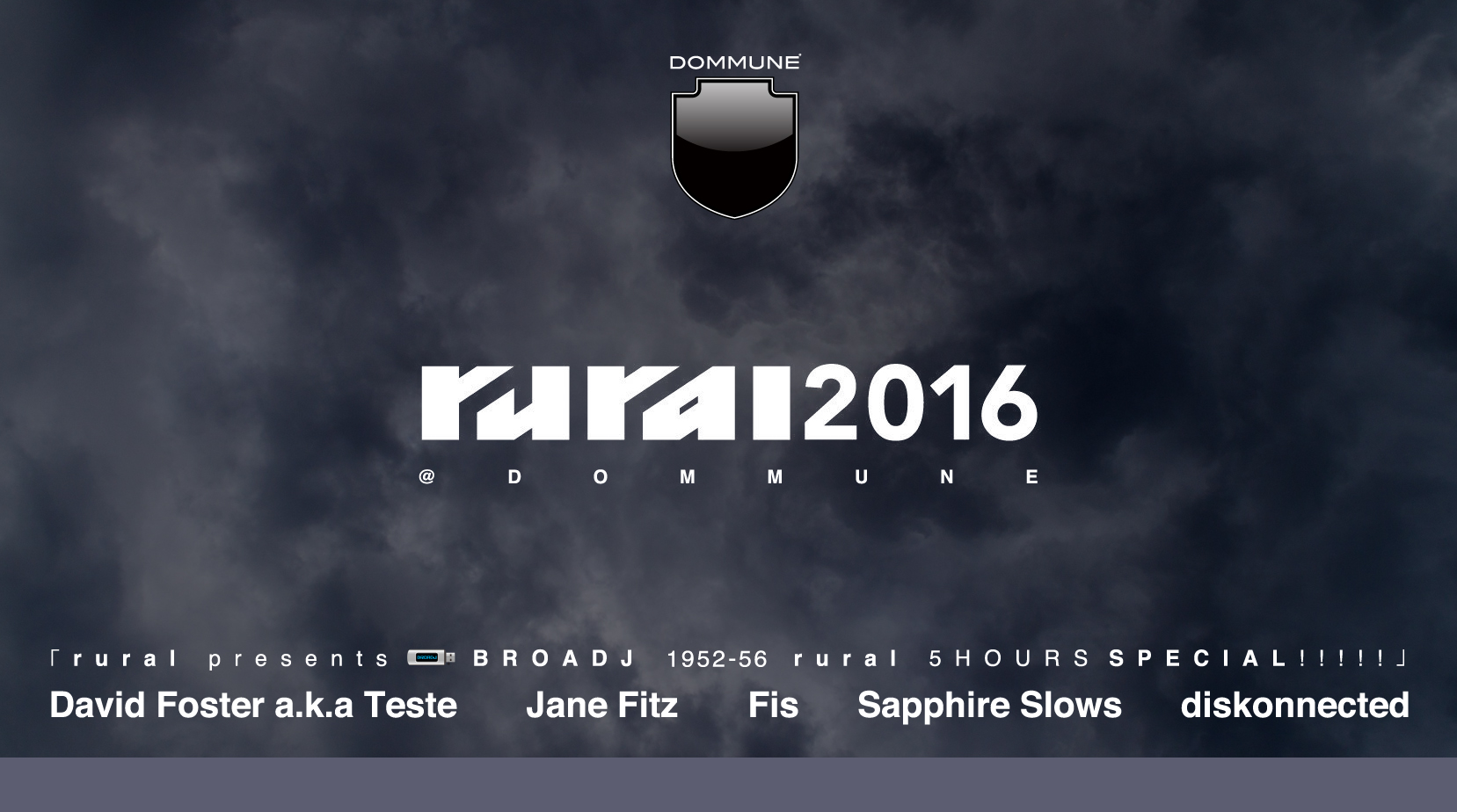 大自然のなか世界のアンダーグラウンドな音楽を堪能す野外パーティ<rural 2016>が7月16から、18日まで長野県東御市新張湯の丸/湯の丸高原にて開催決定!今年も大自然を舞台にテクノ、ミニマル、インダストリアル、エクスペリメンタルなアーティストたちが轟音を響かせてくれるだろう。メインステージのラインナップは、Sendai Sound System (BEL) [DJ]、Mika Vainio (φ,Blast First Petite | FIN) [Live]、Pearson Sound (Hessel Audio | UK) [DJ] 、O/H (Rich Oddie of Orphx & David Foster of Huren, Teste | CAN) [Live]、NEEL (Spazio Disponibile, Voices From The Lake | IT) [DJ/Live Hybrid-]、AOKI takamasa (Raster-Noton | JP) [Live]、Cio D’Or (Semantica Records | DE) [DJ]、DJ NOBU (Future Terror, Bitta | JP) [DJ]、Felix K (Desytopian | DE) [DJ]、Solar (we are monsters | US) [DJ]、Jane Fitz (Night Moves | UK) [DJ]、Felix K and ENA (Hidden Hawaii | DE/JP) [Live]、Wata Igarashi (Midgar Records | JP) [Live]、Fis (Tri Angle Records | NZ/DE) [Live]、Chris SSG (MNML SSGS | JP) [DJ]!!!!! そのPre-Preプログラムが7/14木DOMMUNEで開催!!!!!! 必見です!!!!! |