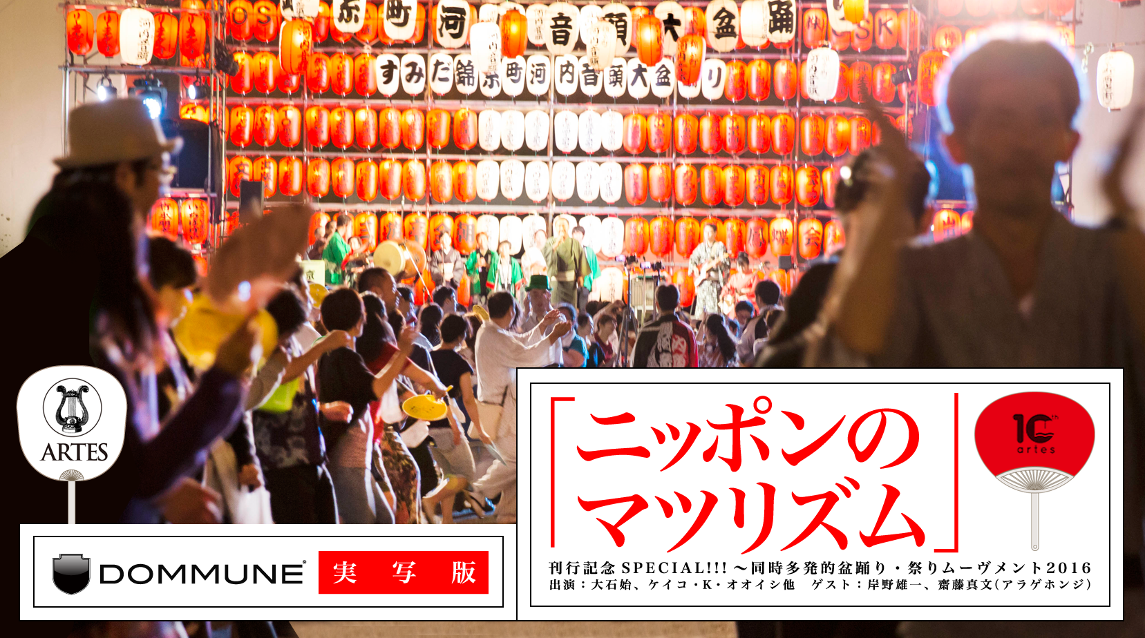 ここ最近、盆踊り・祭りが盛り上がっている。盆踊り・祭りが持つディープなグルーヴに魅せられる音楽フリークが増加しているほか、その爆発的な祝祭空間に導かれるダンサーもあきらかに増えている。その一方、新しい解釈のもと、自分たちの手によって盆踊りを始めるケースも少しずつ増加中。そのような現状を、新刊『ニッポンのマツリズム~盆踊り・祭りと出会う旅』(アルテス・パブリッシング)を上梓した大石始(ライター)とケイコ・K・オオイシ(フォトグラファー)がご紹介。各地で撮影してきた激レアな盆踊り・祭り動画を上映しながら、その可能性と現状、問題点、未来像を探ります。ゲストには大江戸祭り盆踊り前日祭「中州ブロックパーティ」などを仕掛ける岸野雄一、民謡や祭り囃子を採り入れながら新時代のジャパニーズ・ソウル・ミュージックを奏でるバンド、アラゲホンジの齋藤真文。あなたの知らない「ニッポン」と出会える120分間。お見逃しなく!(大石始) 【登場する盆踊り・祭り】大川平の荒馬踊り(青森県)五所川原立佞武多(青森県)西馬音内盆踊り(秋田県)秩父夜祭(埼玉県)錦糸町河内音頭大盆踊り(東京都)高円寺阿波おどり(東京都)郡上おどり&白鳥おどり(岐阜県)磯部の御神田(三重県)阿波おどり(徳島県)香春町の盆踊り(福岡県)牛深ハイヤ節(熊本県)奄美大島のアラセツ行事と八月踊り(鹿児島県)市来の七夕踊(鹿児島県)本島と浜比嘉島のエイサー(沖縄県)などなど |