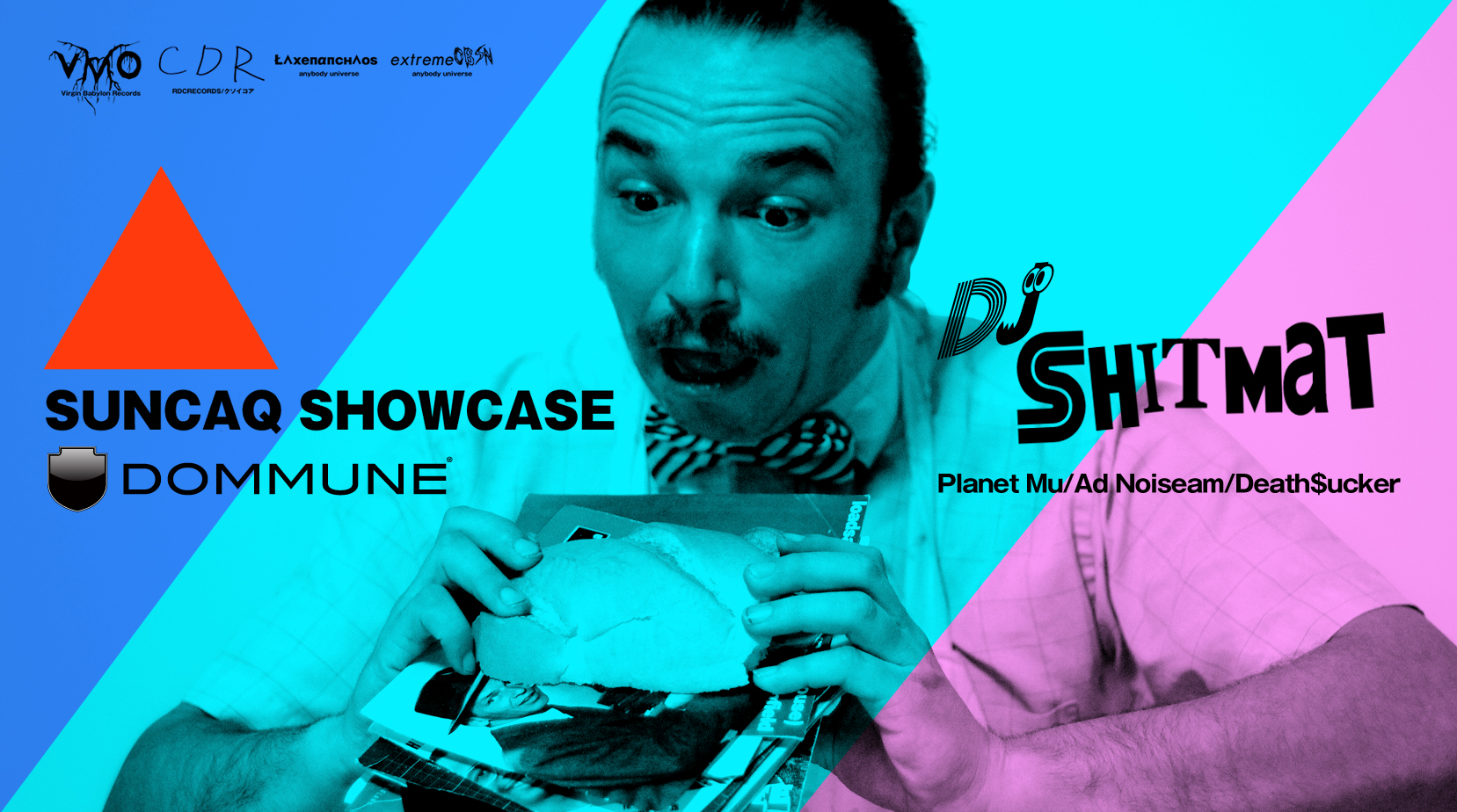 Tech Diff(Peace Off)招聘を皮切りに今春より始動し、屋内型フェスとして好評を博しているTRIANGLE OSAKAの看板イベントSUNCAQ(さんかく)提供の"SUNCAQ SHOWCASE"第2回目の今回は11年ぶりの来日を果たすBREAKCOREレジェンドShitmat (Planet Mu)!10/26にVirgin Babylon Recordsより1stアルバム「Catastrophic Anonymous」をリリースするVMOを前半と地続きでピックアップのDOMMUNEスペシャル!VMOはなんとドラムにあのRUINSの吉田達也氏を迎えてのスペシャルセットを披露!!!!!