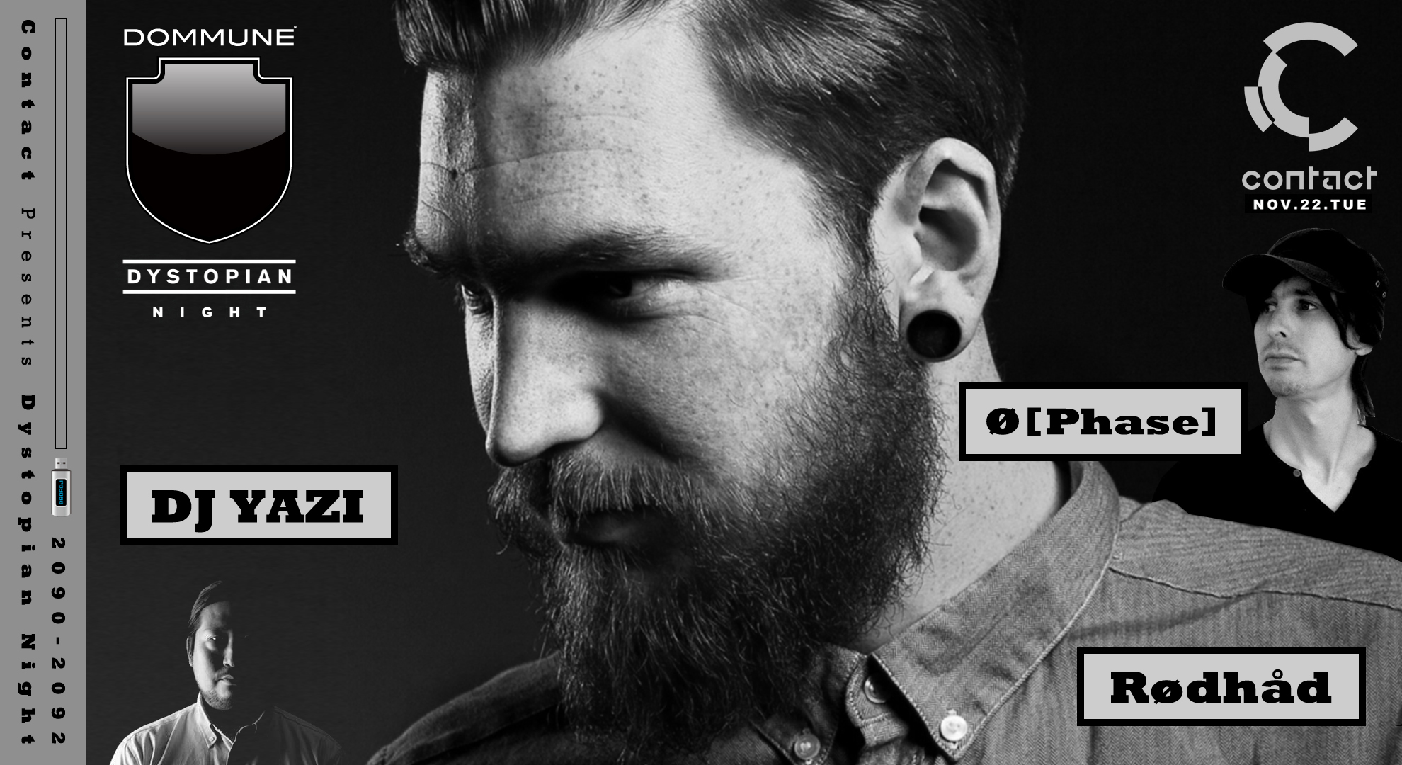 新世代ベルリンローカルテクノシーンの中心とも言うべきDystopian。レーベル/パーティ/ブッキングエージェントと総合的にプロデュースし、現行のシーンを牽引する彼らのレーベルパーティが11/22、Contactで初開催される。Dystopianを世界的に広く知らしめた人物と言っても過言ではないRødhådと、今回初の来日となるØ [Phase]の、2人の看板DJが登場。また、Dystopianのコンピレーションに楽曲を提供した実績を持ちながら、玄人好みのディープハウス/ビートダウンハウス作品のリリースで世界的に支持を集めるベルリンのレーベルMojubaのオーナーとして幅広く活躍するDon Williamsも、アップデートされたセットを披露する予定だ。 一方のContactフロアでは、今はなきManiac Love出演時代から暗躍してきたダークホースで、そのデビューEPがJuno Recordsによる2015年ベストレコード100選の6位にランクインし瞬く間に世界のトッププレーヤーの座に躍り出たYoshinori Hayashiをゲストに迎える。加えて、以前Rødhådの来日公演をサポートしたメンバーも参加し、Dystopianのカラーを色濃く演出する。 |