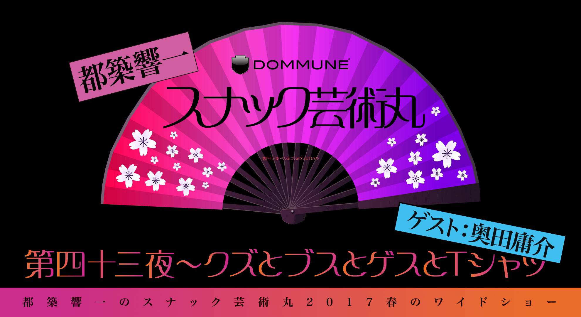 2月の「ヲタの細道」に続く「スナック芸術丸」。43回目となる今回は、いろんな話題を詰め込んだワイドショー形式でお届け!2016年に公開され、一部に熱狂的な反応を引き起こしながら、その後は上映の機会がほとんどないまま伝説と化していたハードコア・バイオレンス映画『クズとブスとゲス』が、奇跡のDVDリリースを果たしたばかりの奥田庸介監督を招いてのライブトーク。北九州市若松のグランドキャバレー従業員寮から発掘された、1400枚以上のヌードダンサー&芸人ブロマイドを完全掲載する驚異の電子書籍『おんなのアルバム キャバレー・ベラミの踊り子たち』の発売記念レビュー。そしてメールマガジン「ロードサイダーズ・ウィークリー」の大好評連載『捨てられないTシャツ』単行本発売を直前に控えての、メディア初のお披露目!そしてもしかしたら、さらにネタが増えるかも・・・。あっという間の2時間・濃密トークになるはず。ぜひ、19時のスタートからご参加ください! |