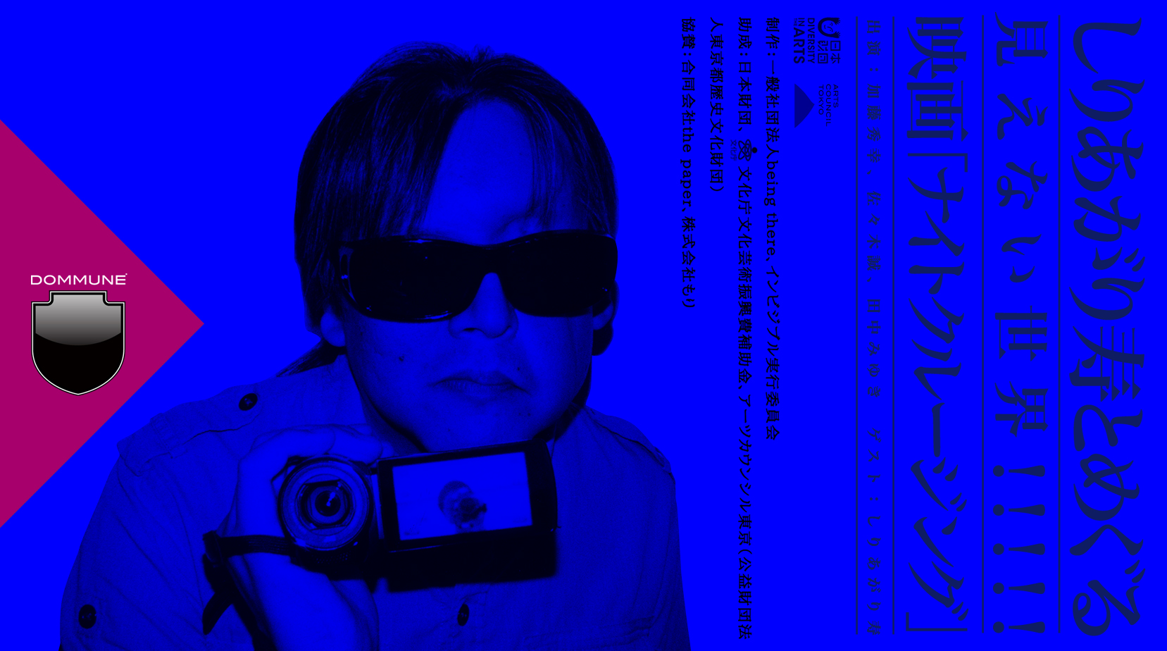 ■⽣まれながらの全盲者が映画をつくるプロセスを追ったドキュメンタリー映画『ナイトクルージング』。見えないことで見えてくる世界とは?見えるから見えない世界とは?つくることを通して、見える/見えないを超える試みを映画として実現するこのプロジェクト!先天的な視覚障害を持つため、⽣まれたときから光すら感じたことがない主⼈公・加藤秀幸は、システムエンジニア、ベーシストとして活躍しています。そんな加藤が今回初めて挑戦するのは、視覚芸術である映画制作。加藤が思い描くのは、未来の宇宙の⼩惑星で起こる、⽣まれつき全盲の男と仲間が“ゴースト”と呼ばれる存在を追いかける、SF アクション短編映画です。加藤は映画制作に必要なさまざまな過程を通して、顔や⾊の概念、乗り物の運転、2D で表現することなどを改めて⾒つめ、世界を捉え直していきます。製作を通して明らかになるのは、⼀⼈ひとりの虚像でつくられた世界のありようと、見えること以上に大切なもの。