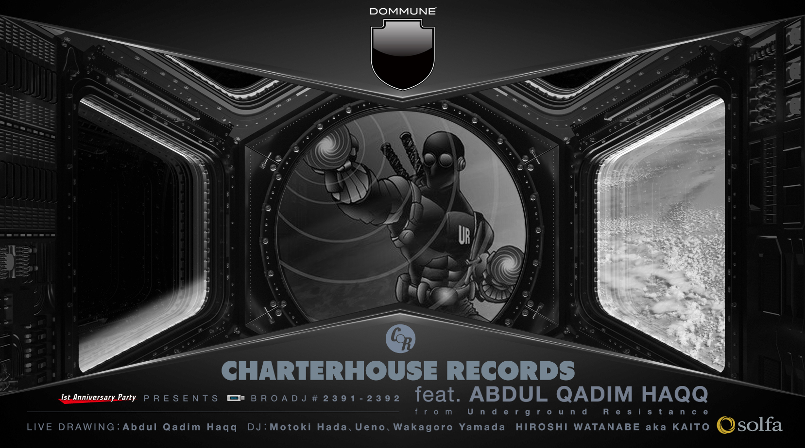 ■TIME TABLE 21:00-21:30 Charterhouse Records B to B (Motoki Hada、Ueno、Wakagoro Yamada) 21:30-22:00 Abdul Qadim Haqq with Wakagoro Yamada 22:00-22:30 Abdul Qadim Haqq with Ueno 22:30-23:00 Abdul Qadim Haqq with Motoki Hada 23:00-24:00 Abdul Qadim Haqq with Hiroshi Watanabe ■Charterhouse Recordsの1周年を記念して、URのオリジナルメンバーAbdul Qadim Haqqがライブペイントを行うwarm-upプログラム!!! クラブミュージックをカセットでリリースするレーベル「Charterhouse Records」が2016年12月レーベル発足から1年を迎え、レーベル誕生1周年を記念した1st Anniversary Partyを開催。そのアニバーサリーパーティーのスペシャル演出としてHIROSHI WATANABEと、URのオリジナルメンバーAbdul Qadim Haqqがライブペイントを行う初共演が実現。DOMMUNE’ではCharterhouseクルー(Motoki Hada/Ueno/Wakagoro Yamada)、そしてスペシャルゲスト=HIROSHI WATANABEのDJプレイ中にAbdul Qadim Haqqのライブペイントを行うAnniversary Partyへのwarm-upプログラムとなる。スタジオ観覧も是非!! |