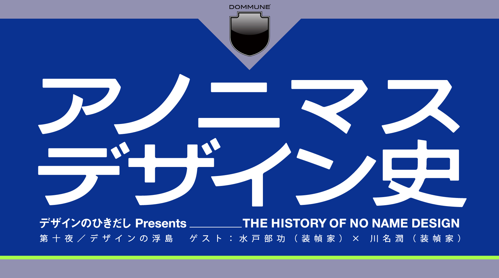 現在、第一線で活躍しているグラフィックデザイナーのみなさんに、超個人的な「デザイン史」をお伺いする、「デザインのひきだしPresents『アノニマスデザイン史』」。 “デザイン”という言葉を認識する以前に浴びるように見ていた、映画や看板、文字、雑誌、本等さまざまな事象をお話いただく。 第十夜のゲストは、『虐殺器官』やハヤカワのポケットミステリーシリーズ等、シンプルながら“文字”の力で目に留まる装幀を手がける水戸部功さん。水戸部さんは、多摩美時代は情報デザインを専攻していたが、菊池信義氏に師事し装幀家の道を志した。そこに至った経緯は何だったのか? 対するは、川名潤さん。漫画から小説、人文書やビジネス書まで、とにかく多彩で、書店で手にした本に彼の名前を見た人は少なくない。そんなお二人のアノニマスデザイン史に迫ります。聞き手は佐藤直樹(ASYL)、フリー編集者の上條桂子が務めます。 |