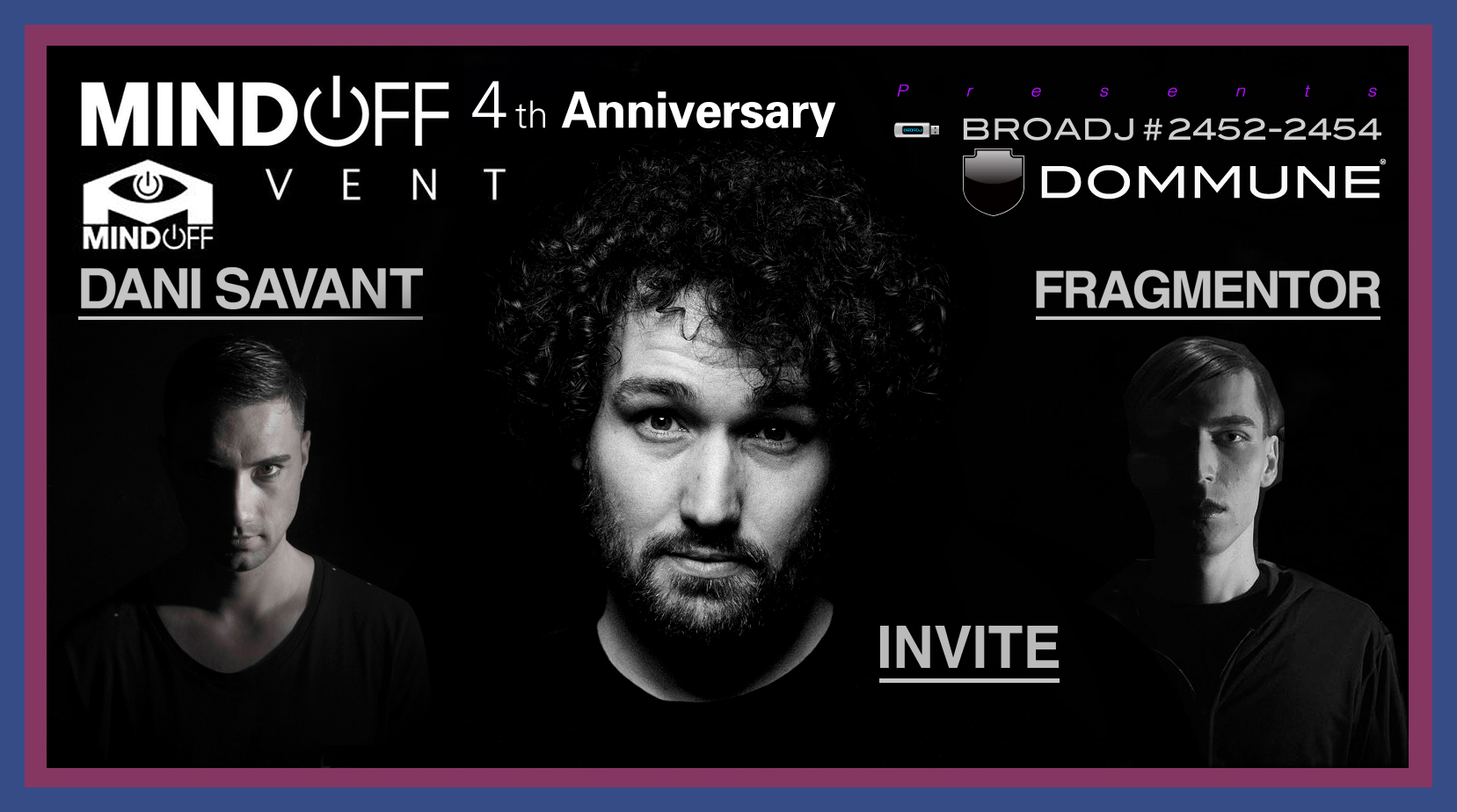 | ■Facebook Link: ・Event Link:https://www.facebook.com/events/1648611285233848/ ・Mind Off:https://www.facebook.com/yourmindoff/ ・Invite:https://www.facebook.com/1nviteschoice/ ・Fragmentor:https://www.facebook.com/fragmentormusic/ |