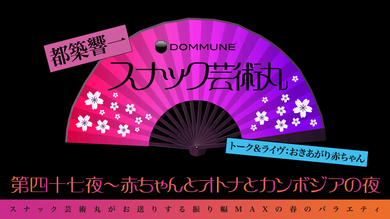 スナック芸術丸がお送りする春のバラエティ「赤ちゃんとオトナとカンボジアの夜」。孤高のアーティスト「おきあがり赤ちゃん」はDOMMUNE初出演、トークに加えてミニライブもあり! グラフィック社から発売されたばかりの新刊写真集『キャバレー、ダンスホール 20世紀の夜』は編集者の方が登場、魅惑の空間をたっぷりお見せします。さらに惜しくも交通事故で亡くなってしまったリードボーカルを偲んで、プノンペンのガレージ・シーンを代表するロックンロールバンド、カンボジアン・スペース・プロジェクトのトリビュートもあり。スナック芸術丸ならではの振り幅MAXバラエティをお楽しみください! |