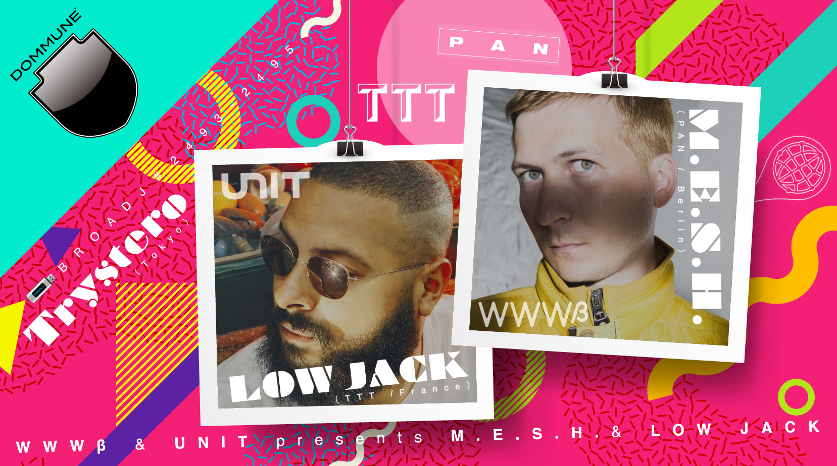 ■ベルリンの〈PAN〉よりM.E.S.H.!ロンドンの〈The Trilogy Tapes〉そしてニューヨークの〈L.I.E.S.〉からLOW JACK!WWWβ & Unitの強力タッグによる貴重なDOMMUNEナイト!!!!!