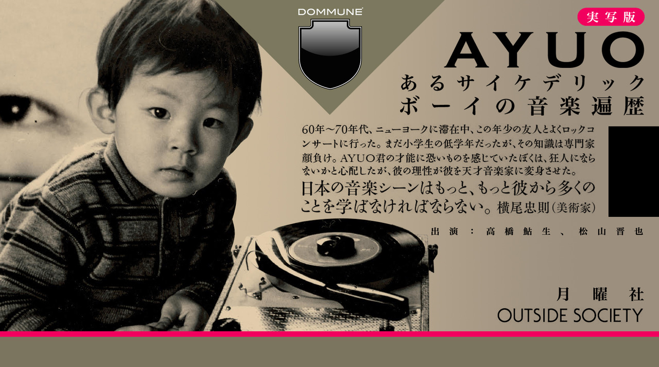 シンガー・ソングライターとして80年代から活躍してきたAYUO(高橋鮎生)。その音楽的土台になっているのは、ニューヨークなど海外で過ごした幼少~思春期(66~75年)の稀有な音楽体験だ。横尾忠則と一緒にフィルモア・イーストで観たジェスロ・タル、高橋睦郎と観たアリス・クーパー、小澤征爾と観たザ・フー、イラン人義父と観たフェアポート・コンヴェンション…。その他ジャニス・ジョプリン、ジェファーソン・エアプレイン、グレイトフル・デッド、ホット・ツナ、ハンブル・パイ、キンクス、イエス、ELP、ジェネシス、ホークウィンド、テリー・ライリー等々。日本に戻ってからもAYUOは、小杉武久、坂本龍一、灰野敬二、太田裕美、ジョン・ゾーン、ピーター・ハミル、ジョン・ケイルなど多くの音楽家たちと交流しながら自身の音楽活動を続けてきたが、それは同時に、激しい誤解とディスコミュニケイションの中でアイデンティティを模索する旅でもあった。高名な作曲家(高橋悠治)の子として生まれ、複雑な家庭環境に翻弄され、常に“Outsider”ったAYUO。今回のDOMMUNEでは、その葛藤を、最近出た自伝的著書「OUTSIDE SOCIETY あるサイケデリック・ボーイの音楽遍歴」に沿って、赤裸々に告白する。トーク後は、ギター&ハーディ・ガーディによるデュオ・ライヴをおこなう。 |