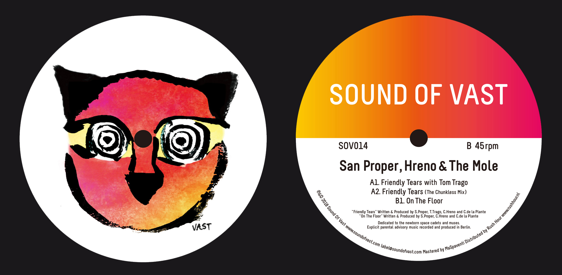 ■<CHAPTER 2>は「21st Century Dance Music Vinyl Studies」(21世紀のダンスミュージック・ヴァイナル・スタディーズ)と題し、1日1アーティスト、もしくは1日1レーベルをヴァイナルを中心とした音源で辿り、その歴史を相対的に、また、そのアイデンティティを体系的に、Cocaleroで乾杯しつつ掘り下げる。第8回のテーマは2014年に、2人の⽇本⼈DJ、Red Pig FlowerとKnockによってアムステルダムで設⽴されたレーベルSound Of Vast!ハウスを軸としながらも、ジャズ、ミニマル、ファンク、アシッド、クラシックなど、トレンドに捉われないリリースを数多く展開し、日本人主宰レーベルとしては初めてRush Hourのディストリビューションと提携を結び、世界的に注目されてるDOMMUNEとも大変縁深いレーベルである。