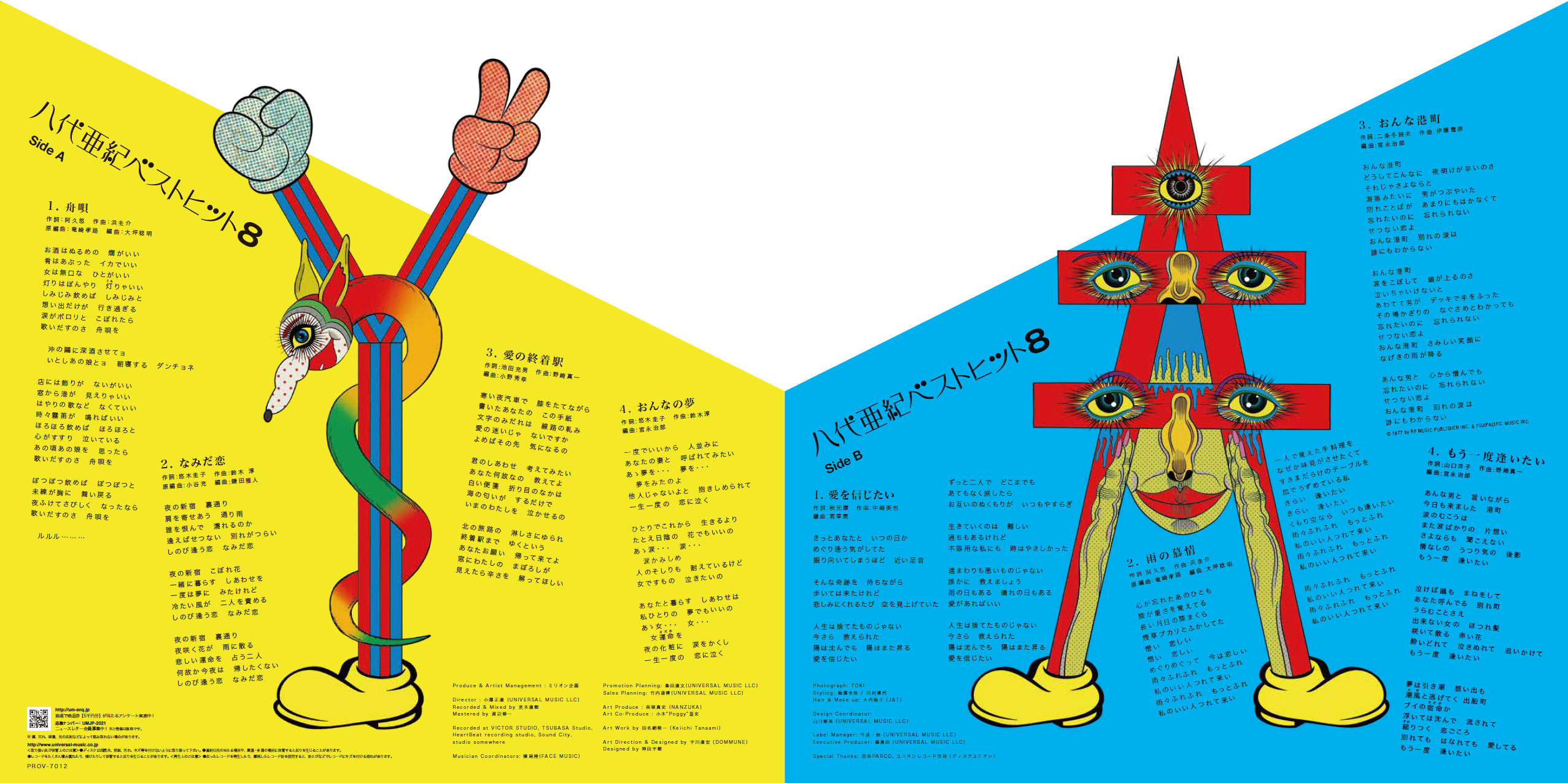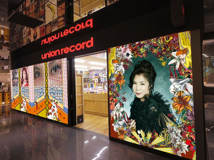B1F「ユニオンレコード渋谷」では、店舗を丸ごとジャックした「八代レコード」となり、デビュー日でもある9月25日(土)より、アナログ盤「八代亜紀ベストヒット8」をユニオンレコード渋谷のみで限定発売します。アナログ盤「八代亜紀ベストヒット8」、デビュー50周年記念ベストアルバム「八代亜紀ベストヒット」のジャケットは、アーティスト田名網敬一、フォトグラファーユニットTOKIが描き下ろし、DOMMUNE宇川直宏がアートディレクションを担当。また、ジャケットのアートワークを使用した限定商品を渋谷パルコ2F「2G」にて販売します。