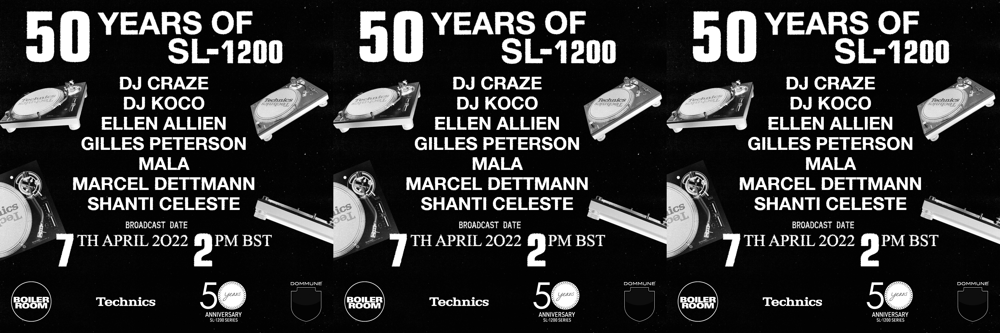 Technics' iconic SL-1200 turntable is 50. To celebrate, we're running a broadcast relay with Dommune from five of our favourite record stores worldwide & these artists