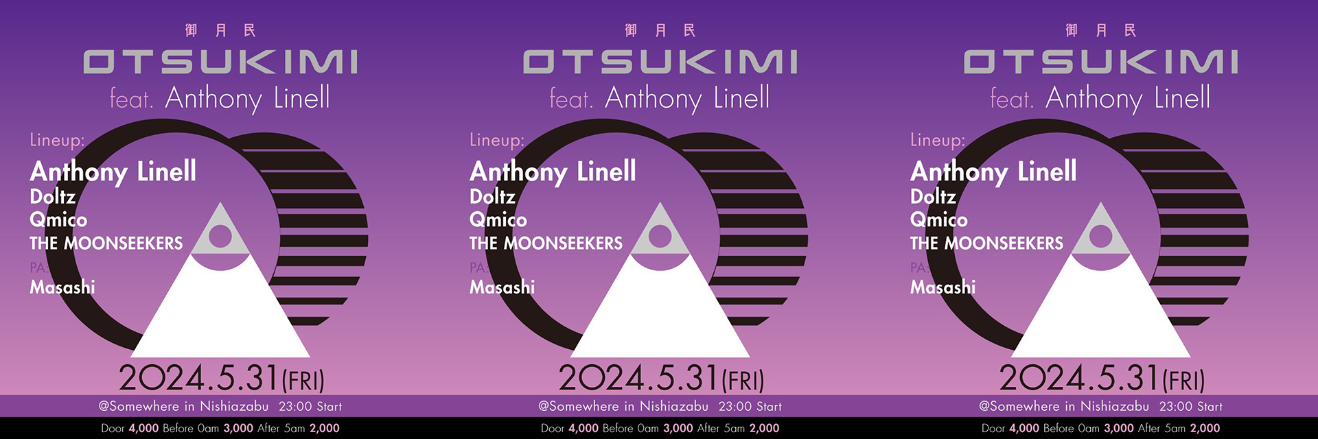 彼の音楽的センスには御月民が求める幾つかのテクスチャーを網羅しており、更には現在日本のシーンのみならず海外でも多くの反響を呼んだDoltzがLive setを本祭では披露する。本祭の脇を固めるは東京のアンダーグラウンドで多方面に確固たる地位を築いたQmico、そしてテクノの特異点を目指す探検隊THE MOONSEEKERS(Keita,Dsk,Soncho)がレジデントとしてラインナップされた。