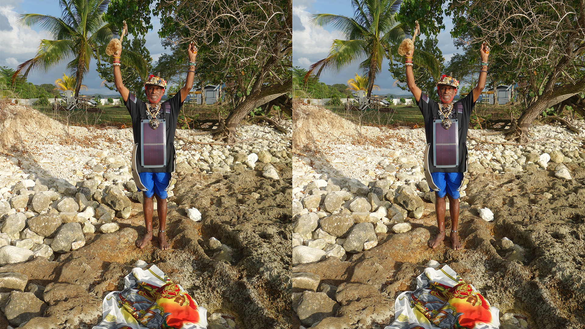 <注意:タイトル「ゴジラ対メガソーラー」は、昨年の橋の下世界音楽祭でのトーク企画のタイトルでした。ゴジラさんとリー・ペリーさんは、どちらかといえばフレンドシップな関係にあり、今回の番組テロップは、DOMMUNEの宇川直宏によるLEE PERRYのSUPER APEシリーズや、MAD PROFESSORやSCIENTISTなどのダブマスター達のアルバムカバーのイラストへのリスペクトと、東宝のゴジラシリーズのコラージュポスターへのオマージュで、両者が実際戦うことはありません(笑)またゴジラは大気核実験の悲しい副産物であり、そんなゴジラが対峙しているのはクリーンエネルギー確保の裏側で自然破壊を伴う悲しいメガソーラーであって、肩にのっている等身大のリーペリーはあくまでも自家発電派で、両者の争いを金槌ひとつで止めに入っているグラフィックです!有太マン & 宇川直宏より>