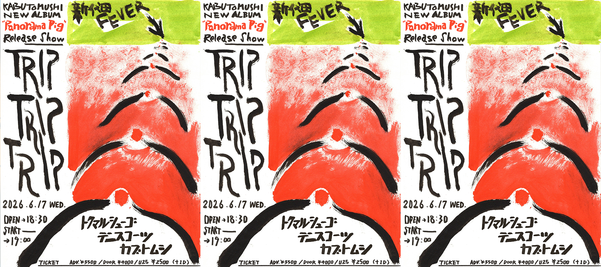 | ENTRANCE | ¥1,500(超エクスクルーシヴ限定50人スタジオ観覧者を募集いたします。Peatixで予約をお願いいたします!!▶︎https://kabutomushidommune.peatix.com/ またエントランスで必ず1ドリンクをご購入ください) |