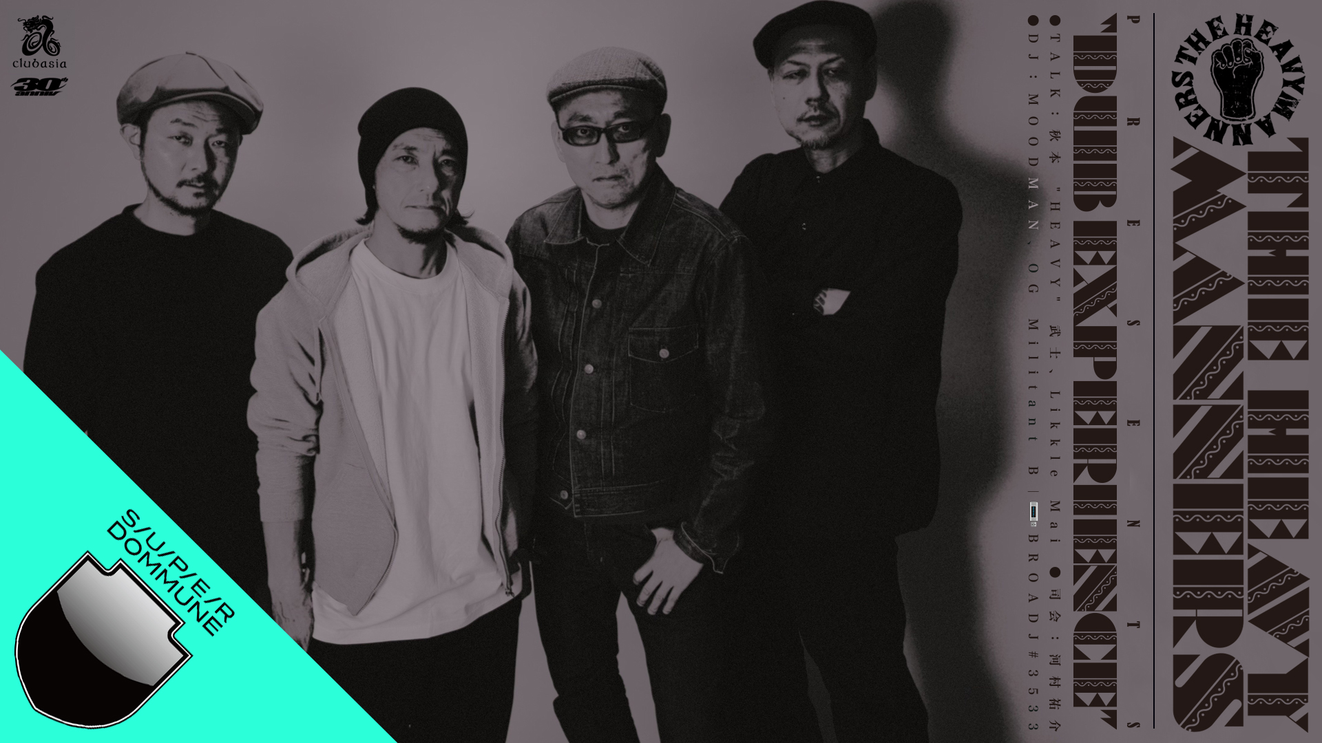 4月24日(金)深夜、渋谷CLUB ASIAにて10年ぶりのライヴを披露するTHE HEAVYMANNERSの “再始動”。その夜に先駆けて、その中心人物、ベーシスト“Heavy”こと、秋本武士に迫る2時間。第一部は、秋本が敬愛する、今年1月26日に逝去したドラマーで、ベーシストのロビー・シェイクスピアとのリズム・ディオ、スライ&ロビーで知られるスライ・ダンバーを追悼。THE HEAVYMANNERSのファースト・アルバムでのスライとの2曲のセッション体験を中心にその偉業に迫ります。第二部は秋本武士のこれまでのキャリアを総括。ドラマーの“DRY”七尾茂大とのDRY&HEAVY、GOTH-TRADとのREBEL FAMILIA、そしてひさびさ復活するTHE HEAVYMANNERSまでその歴史を紐解きます。またDJにMOODMANを迎え、SLY & ROBBIE ONLYのDJ、OG Militant BによるHEAVY's TRACKS ONLYのDJも。超絶必見の"DUB EXPERIENCE”な3時間!!